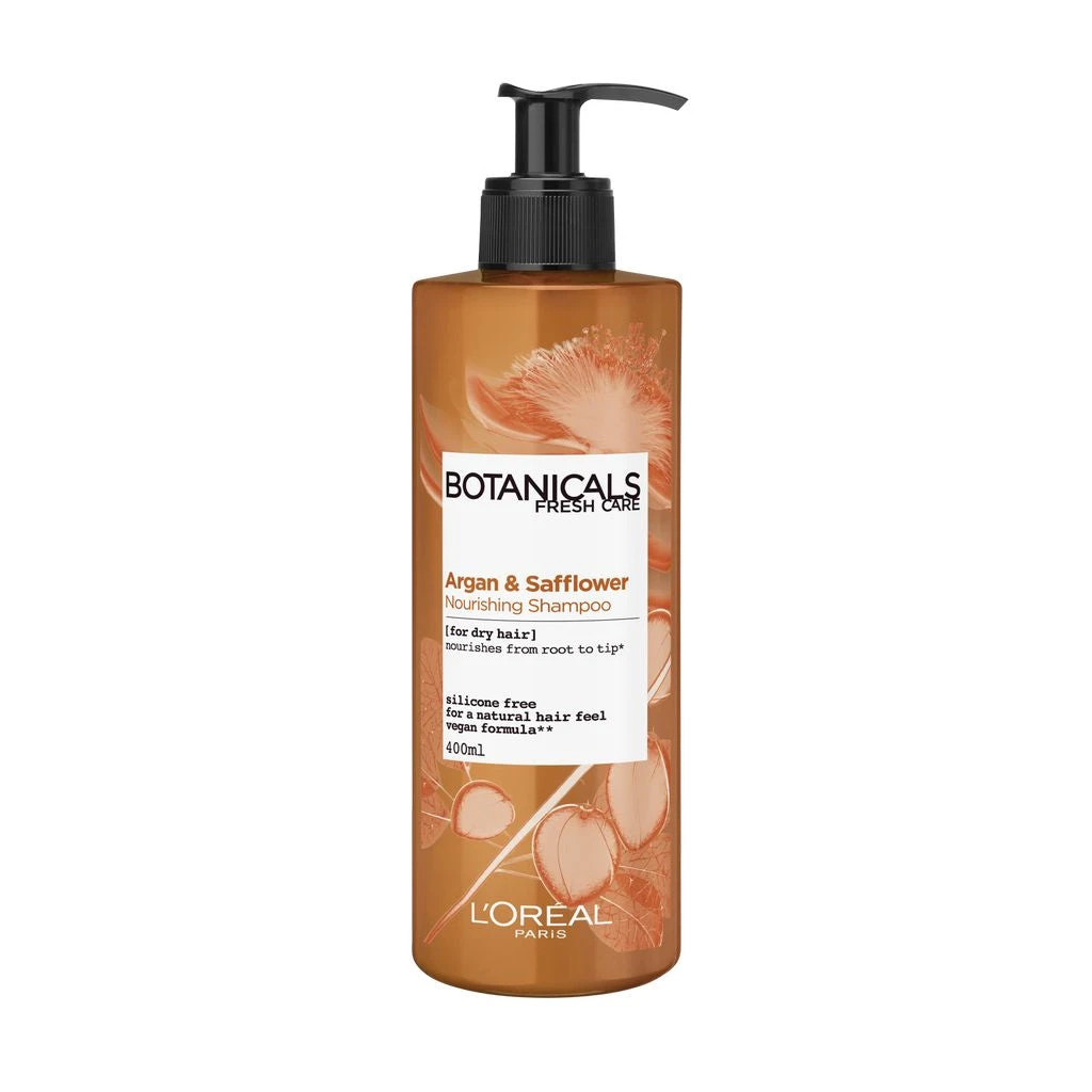 L’Oréal Botanicals argan and safflower nourishing shampoo is infused with argan oil, safflower, soya and coconut oils to deeply hydrate and nourish dry hair.